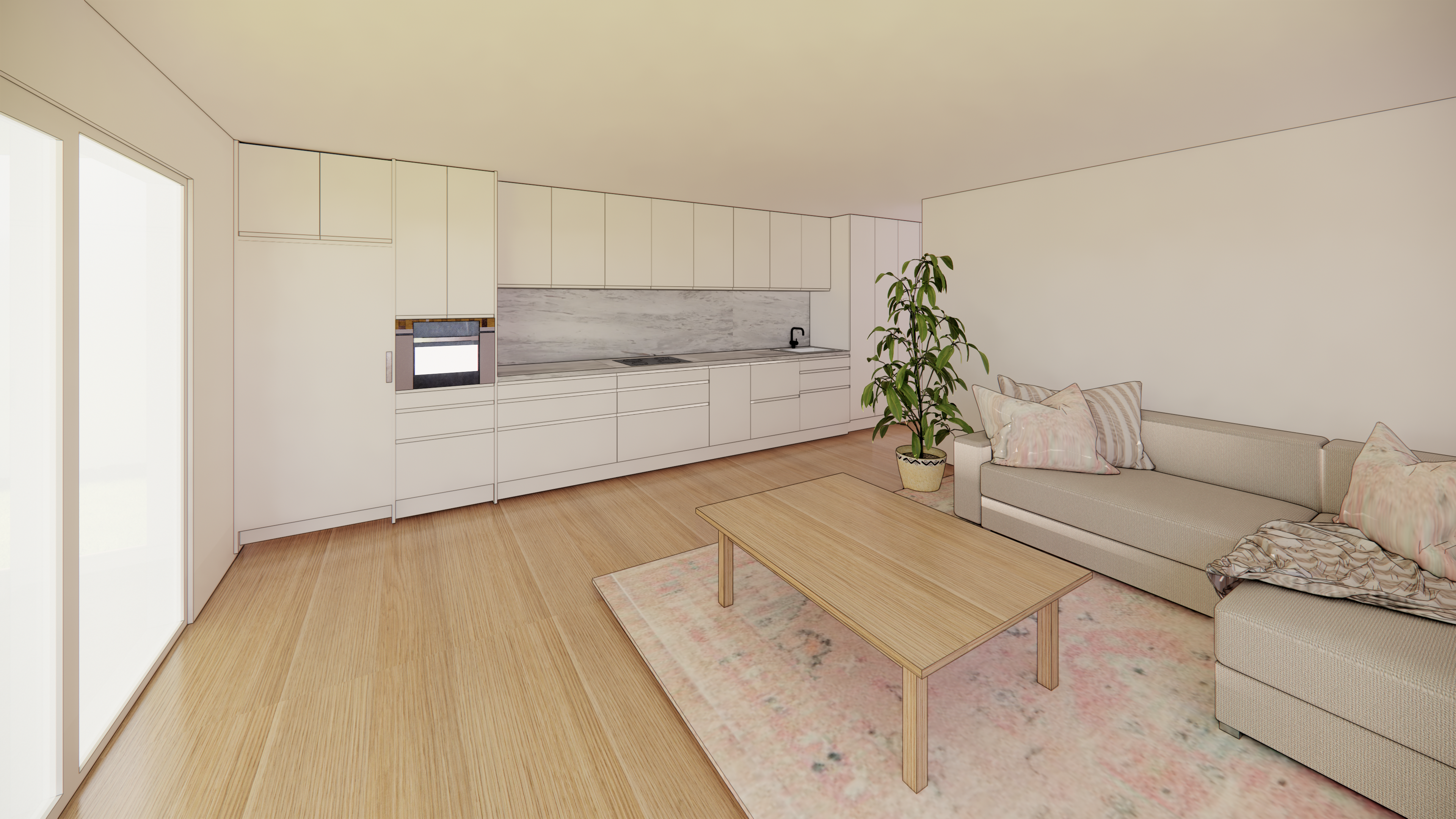 DeliveryThe final result was a fully self-sufficient granny flat featuring a spacious bedroom, a dedicated office area, and direct access to a private swimming pool. The main house's interior was thoughtfully redesigned to create a seamless flow from the living areas to the outdoor space, enhancing the overall living experience. The careful planning and execution provided both the clients and their tenants with a private, comfortable, and aesthetically pleasing living environment.